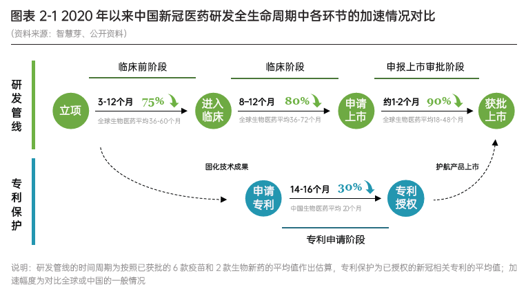报告显示ღ★ღ◈,在与疫情赛跑的过程中ღ★ღ◈,我国新冠相关疫苗和药物的研发全面加速ღ★ღ◈,相较于8-15年之久的全球生物医药一般研发周期ღ★ღ◈,缩短70-90%ღ★ღ◈。在研发管线层面ღ★ღ◈,新冠疫苗研发和新冠药物研发的全周期分别是12-16个月和20-24个月ღ★ღ◈,研发管线%ღ★ღ◈,与美国相比稍有逊色ღ★ღ◈。